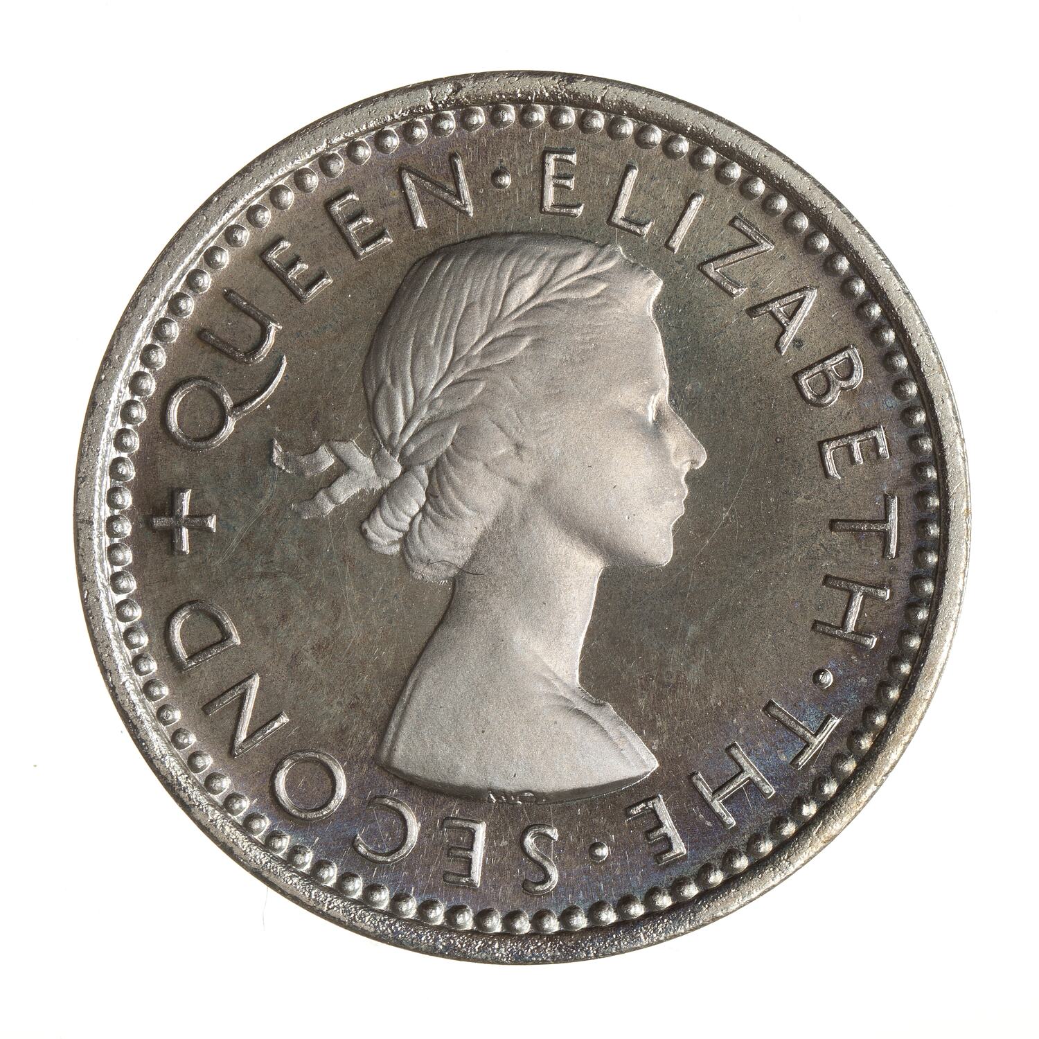 All bore on the obverse the uncrowned effigy of Her Majesty by Mrs. Gillick, O.B.E., together with the incritpion "QUEEN ELIZABETH THE SECOND". The reverse designs of the denominations from the halfpenny to the halfcrown were unchanged, but the reverse design of the crown was new.