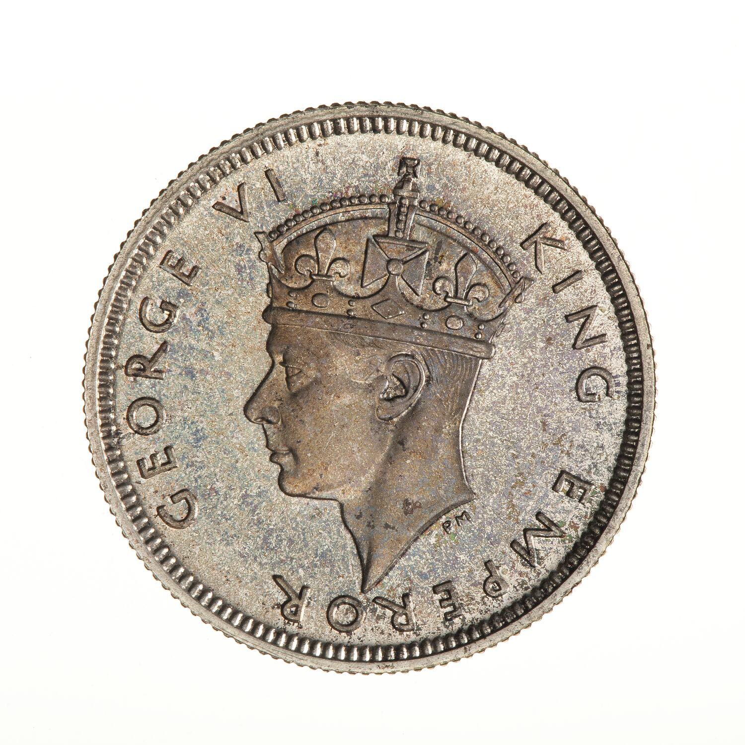 Crowned head of the King facing left; around, KING GEORGE THE SIXTH; the artist's initials, HP, below neck truncation