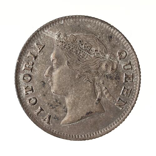 Diademed head of the queen facing left; around, VICTORIA QUEEN
