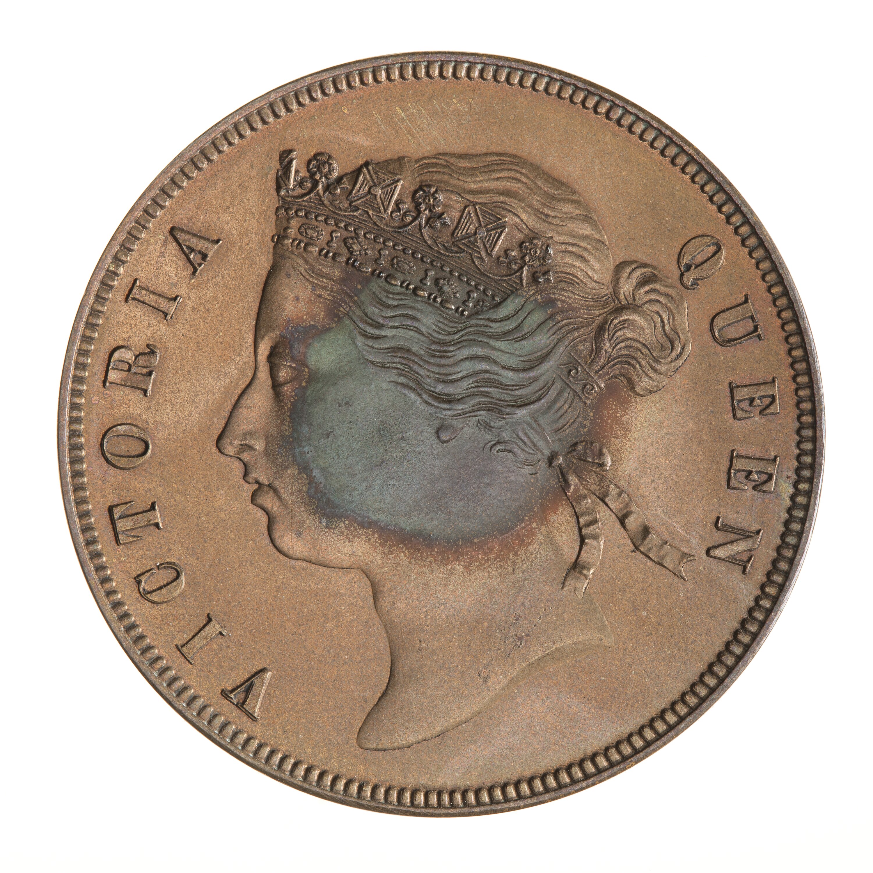 Diademed head of the queen facing left; around, VICTORIA QUEEN