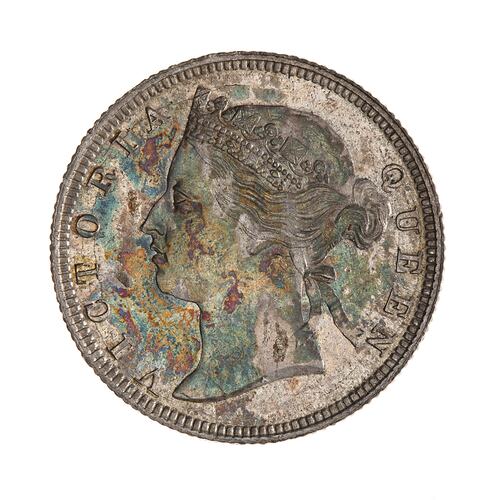 Head of the Queen wearing coronet facing left; around, VICTORIA QUEEN