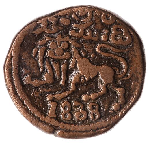 Hammered copper coinage struck at the Bangalore mint in 1838 AD