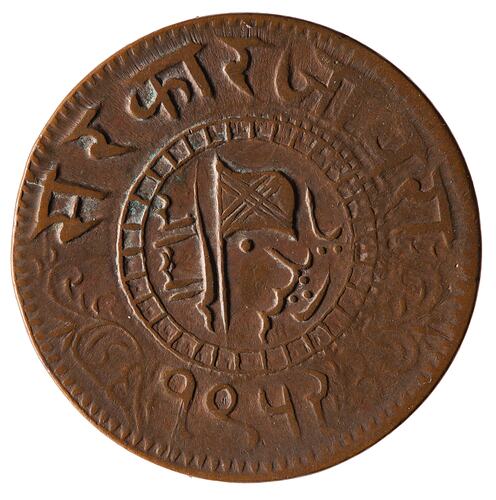 1 Paisa coin, issued by Nawab Muhammad Ismail of the Jaora Princely State, India.
