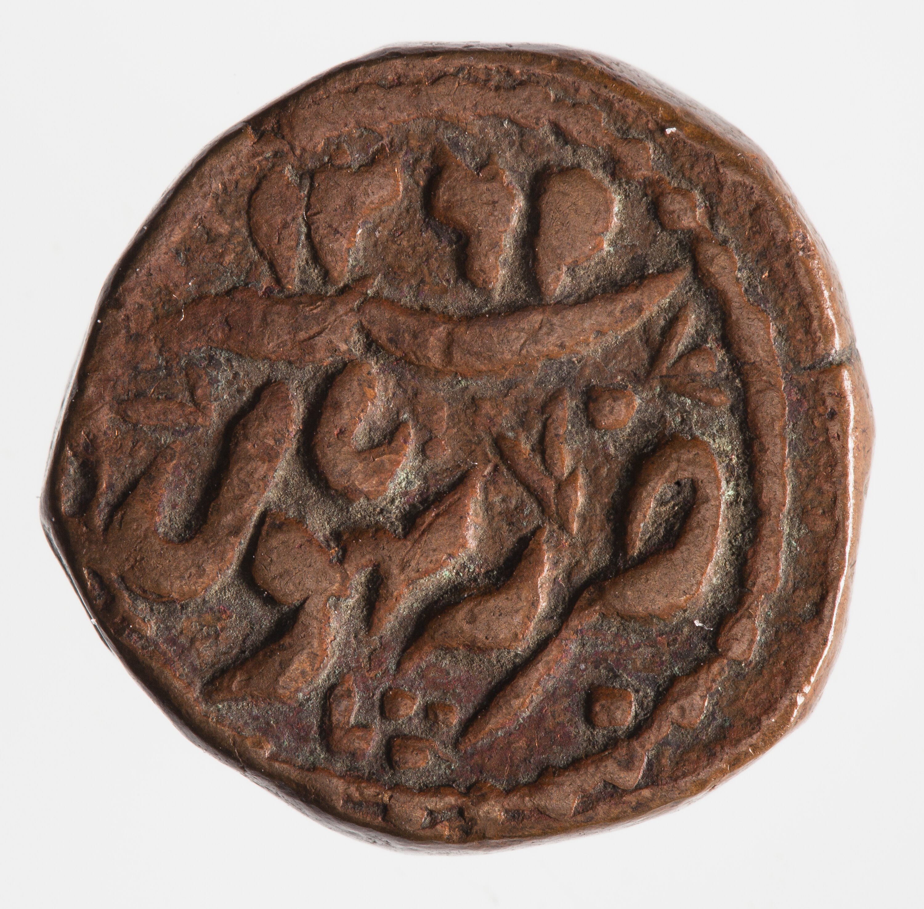 Legend in Persian giving the date, 1269 (the 9 being retrograde) and the mint name - Bhopal