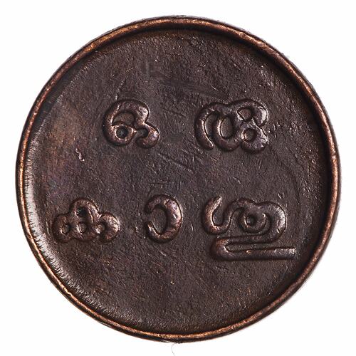 1 Cash coin issued in the reign of Maharaja Rama Varma VI in the Travancore Princely State, India