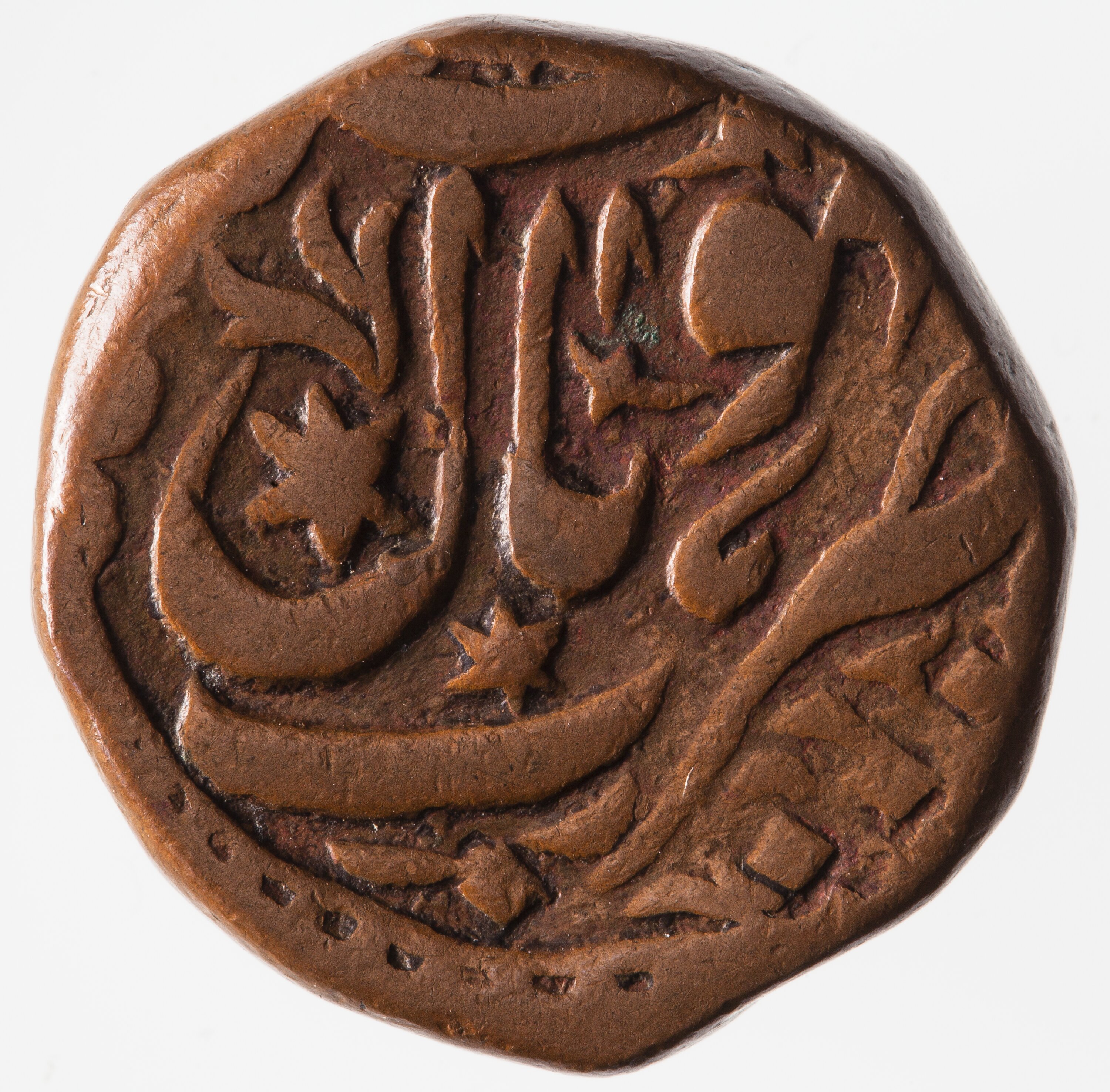 Legend in Persian (partly off flan) giving the name Shah Jahan Begam