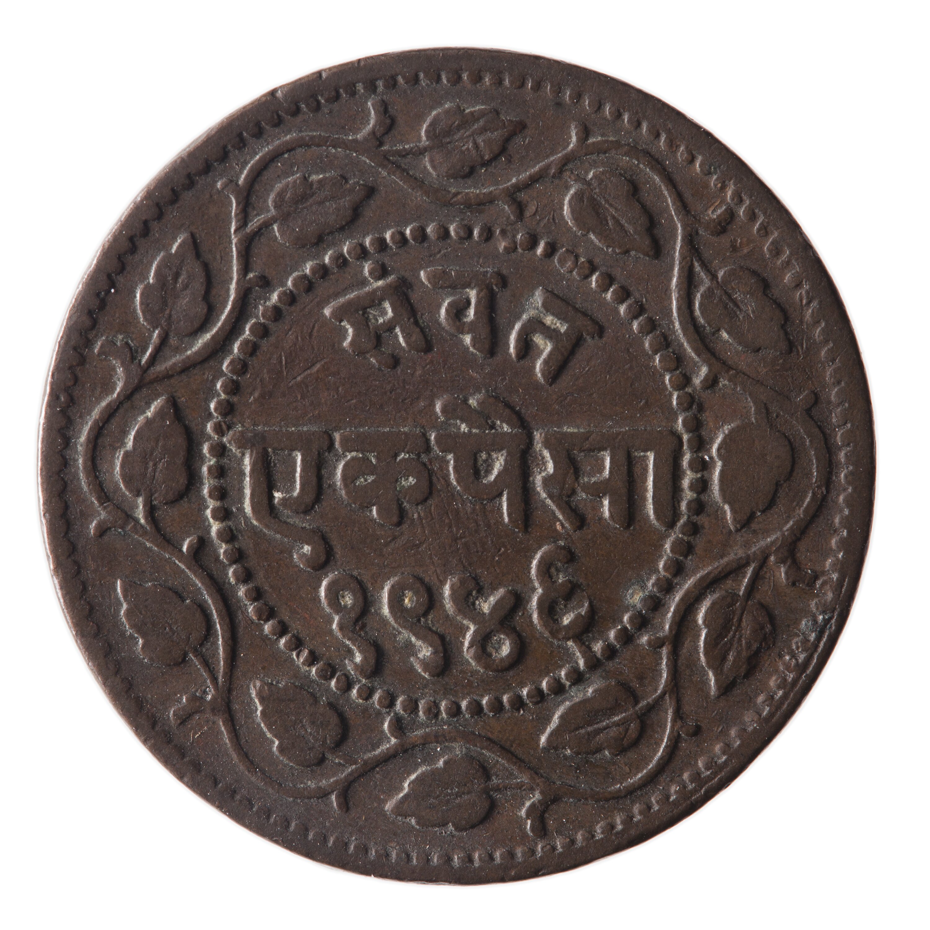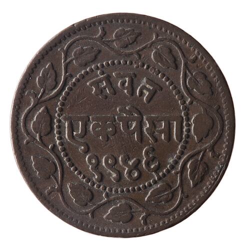 Copper 1 Paisa coin issued by the Gaekwad Maharaja of Baroda, Sayaji Rao III