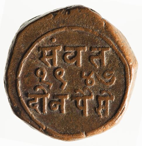 2 Paisa, Hammered Coinage, Issued by Sayaji Rao III, Baroda Princely State, India, VS 1947 (1890). Mint not recorded.