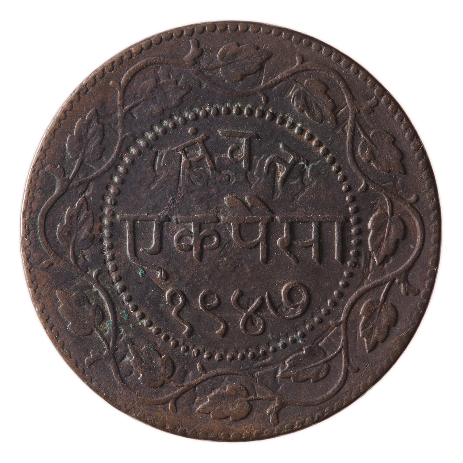 Copper 1 Paisa coin issued by the Gaekwad Maharaja of Baroda, Sayaji Rao III