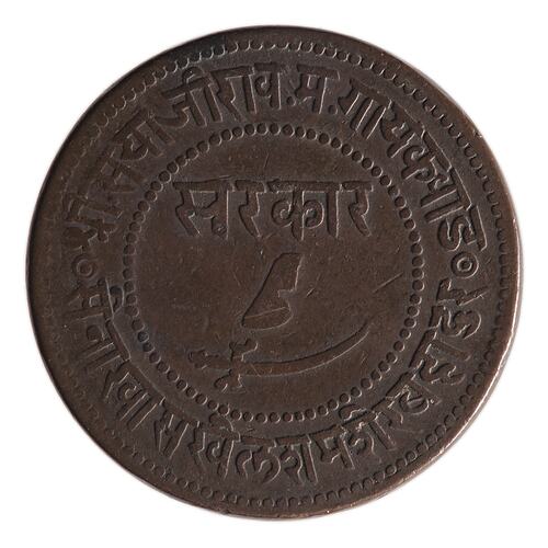 Copper 1 Paisa coin issued by the Gaekwad Maharaja of Baroda, Sayaji Rao III