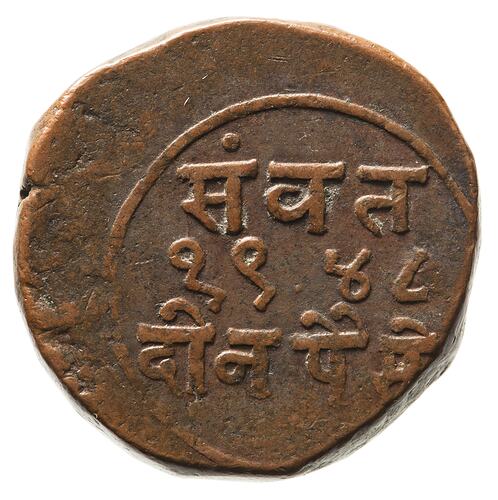 2 Paisa, Hammered Coinage, Issued by Sayaji Rao III, Baroda Princely State, India, VS 1948 (1891). Mint not recorded.