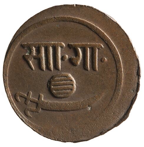 2 Paisa, Hammered Coinage, Issued by Sayaji Rao III, Baroda Princely State, India, VS 1949 (1891). Mint not recorded. Planchet machine punched.