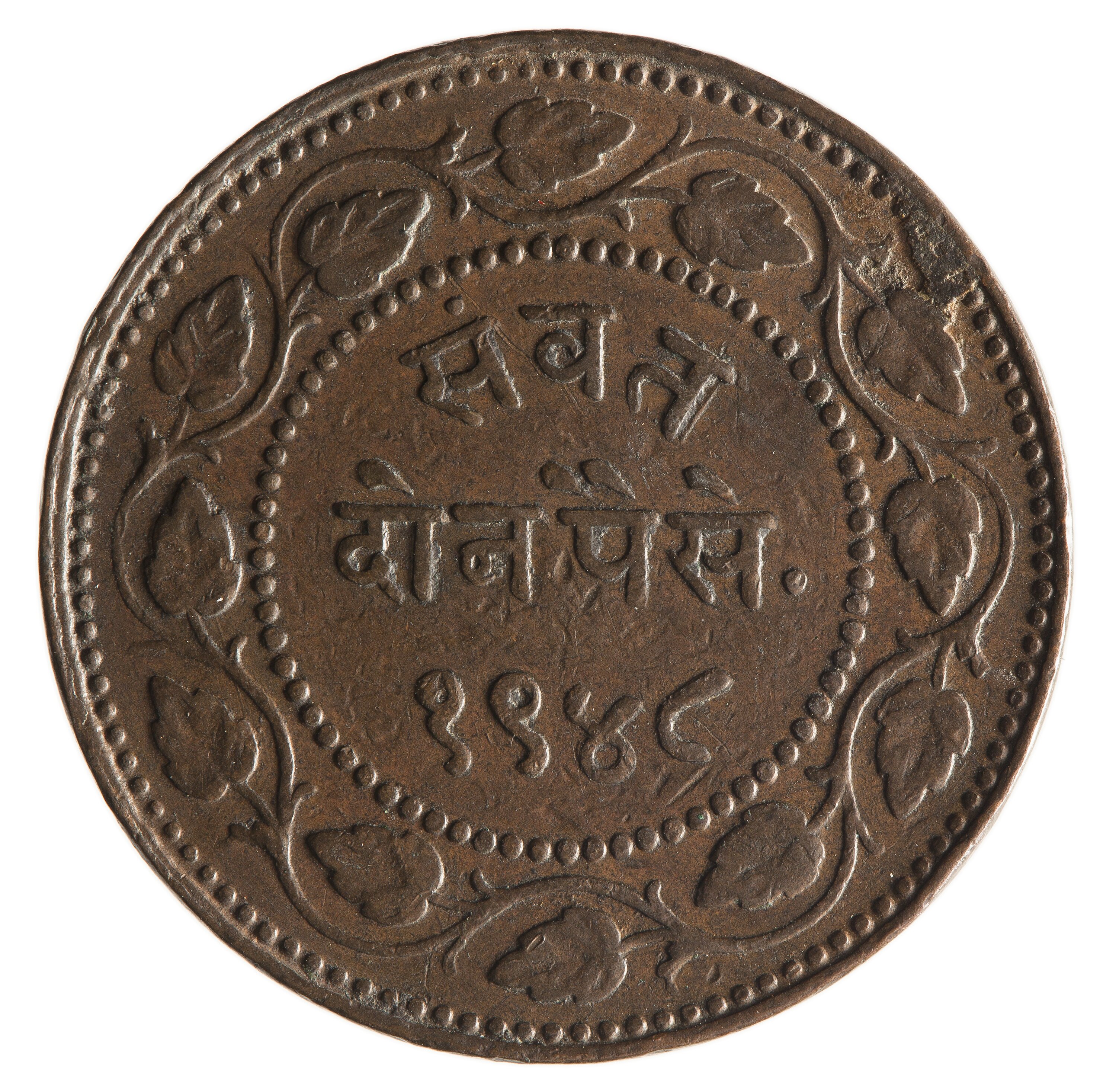 2 Paisa, Milled Coinage, Issued by Sayaji Rao III, Baroda Princely State, India, VS 1948 (1891). Mint not recorded.