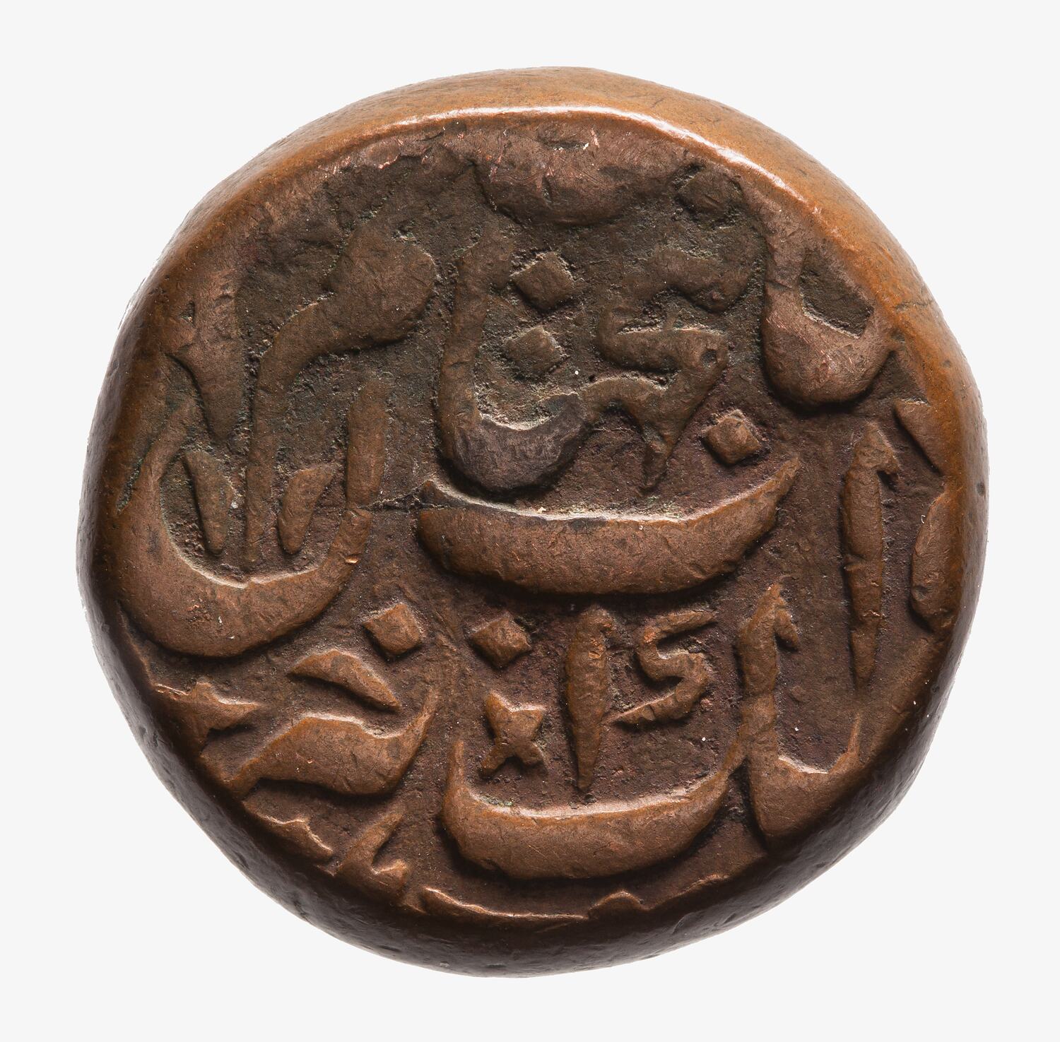Legend in Persian (partly off flan) giving the name of Shah Jahan Begam