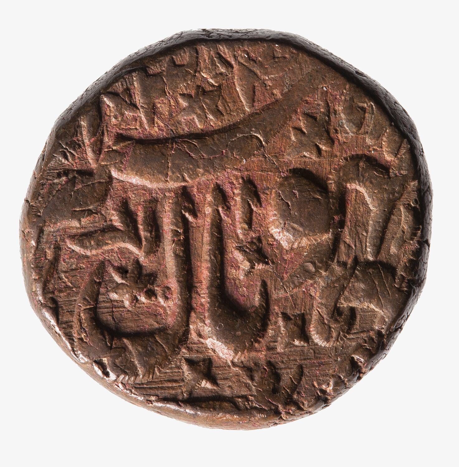 Legend in Persian (partly off flan) giving the name Shah Jahan Begam
