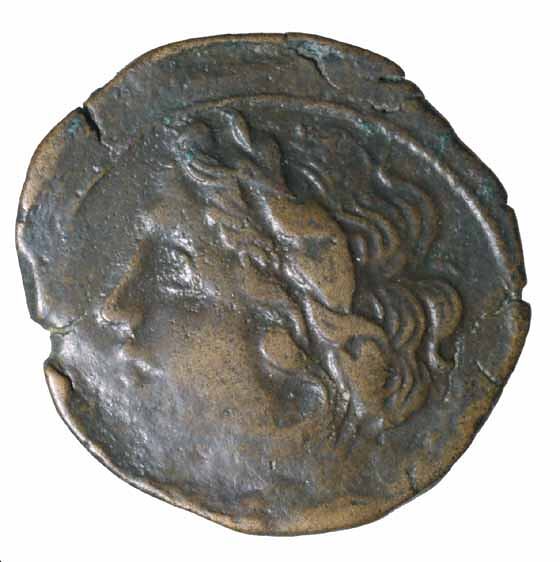 A copper coin issued by the city of Tauromonium, Sicily, 275-212 BC