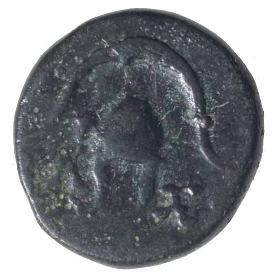 A copper coin issued by King Demetrius Poliorcetes of Macedonia in the period 294-288 BC