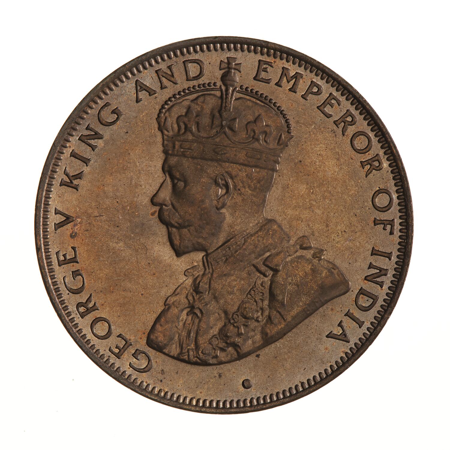 Crowned bust of George V facing right; around, GEORGE V KING AND EMPEROR OF INDIA
