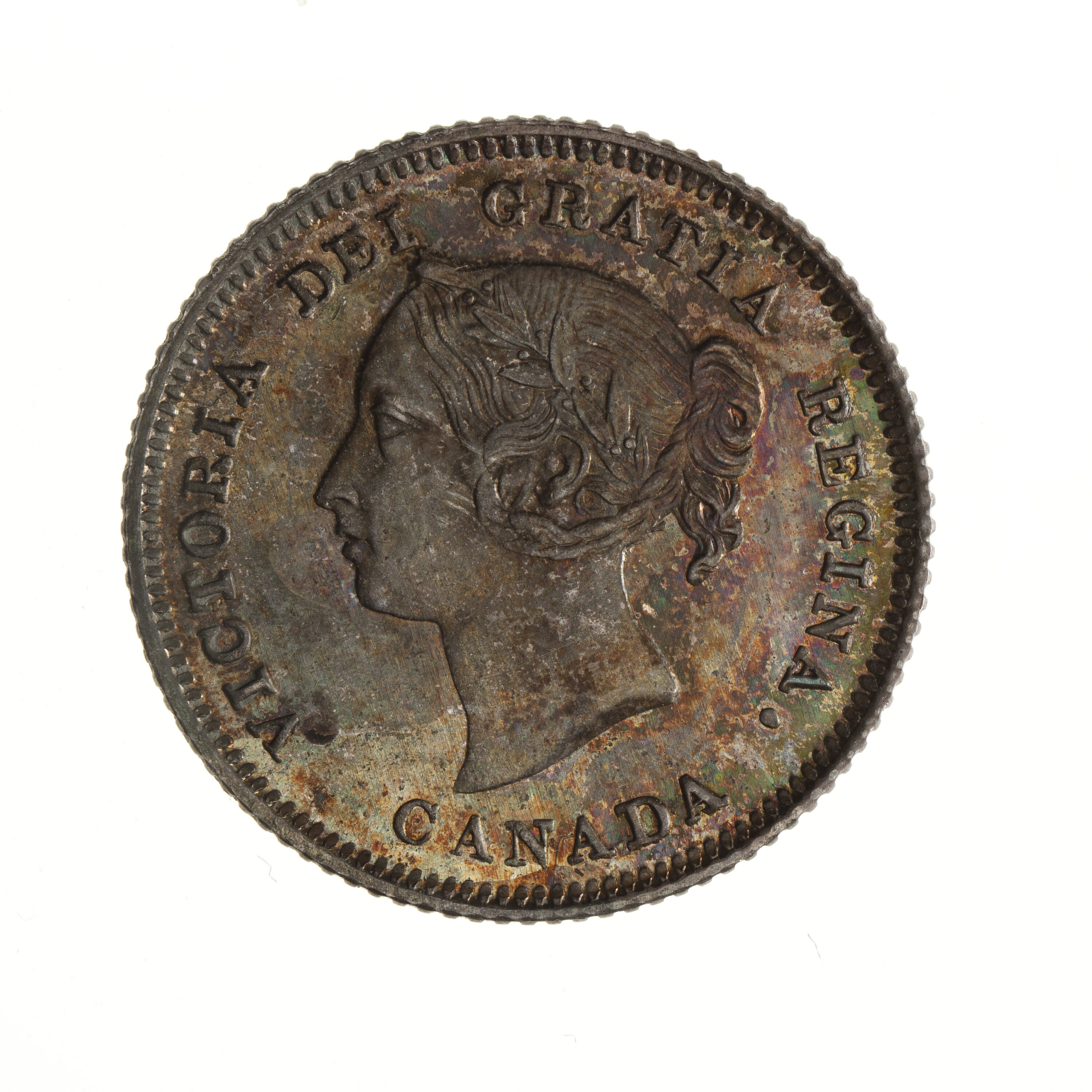 Laureate head of the Queen facing left; around, VICTORIA DEI GRATIA REGINA; below, CANADA