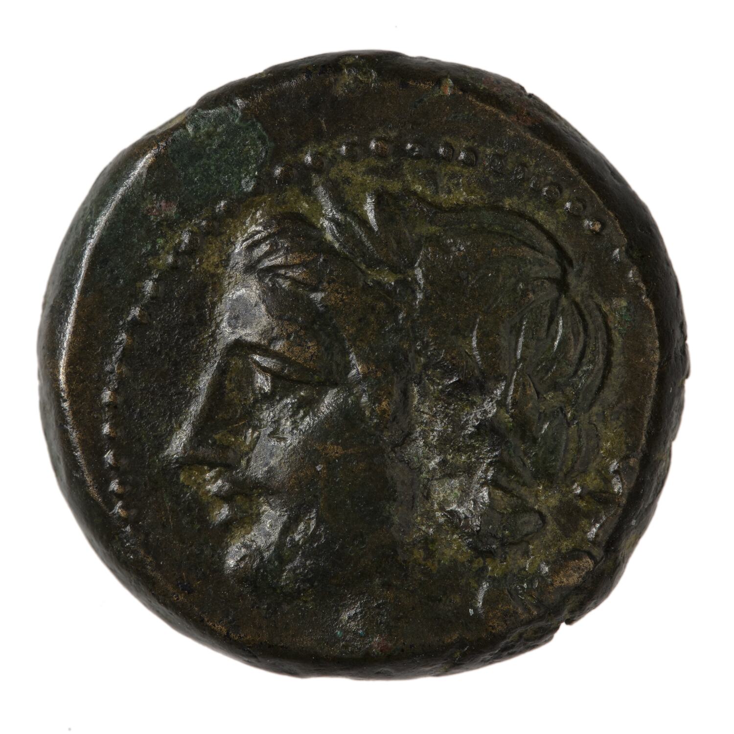 A copper coin issued by the city of Tauromonium, Sicily, 275-212 BCE.