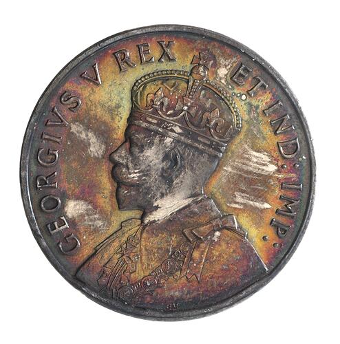 Crowned bust of George V left; around, GEORGIVS V REX ET IND: IMP: