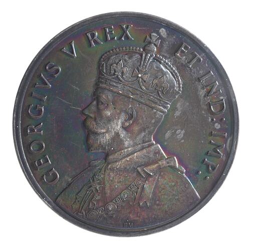 Crowned bust of George V left; around, GEORGIVS V REX ET IND: IMP: Artist's initials on truncation, BM