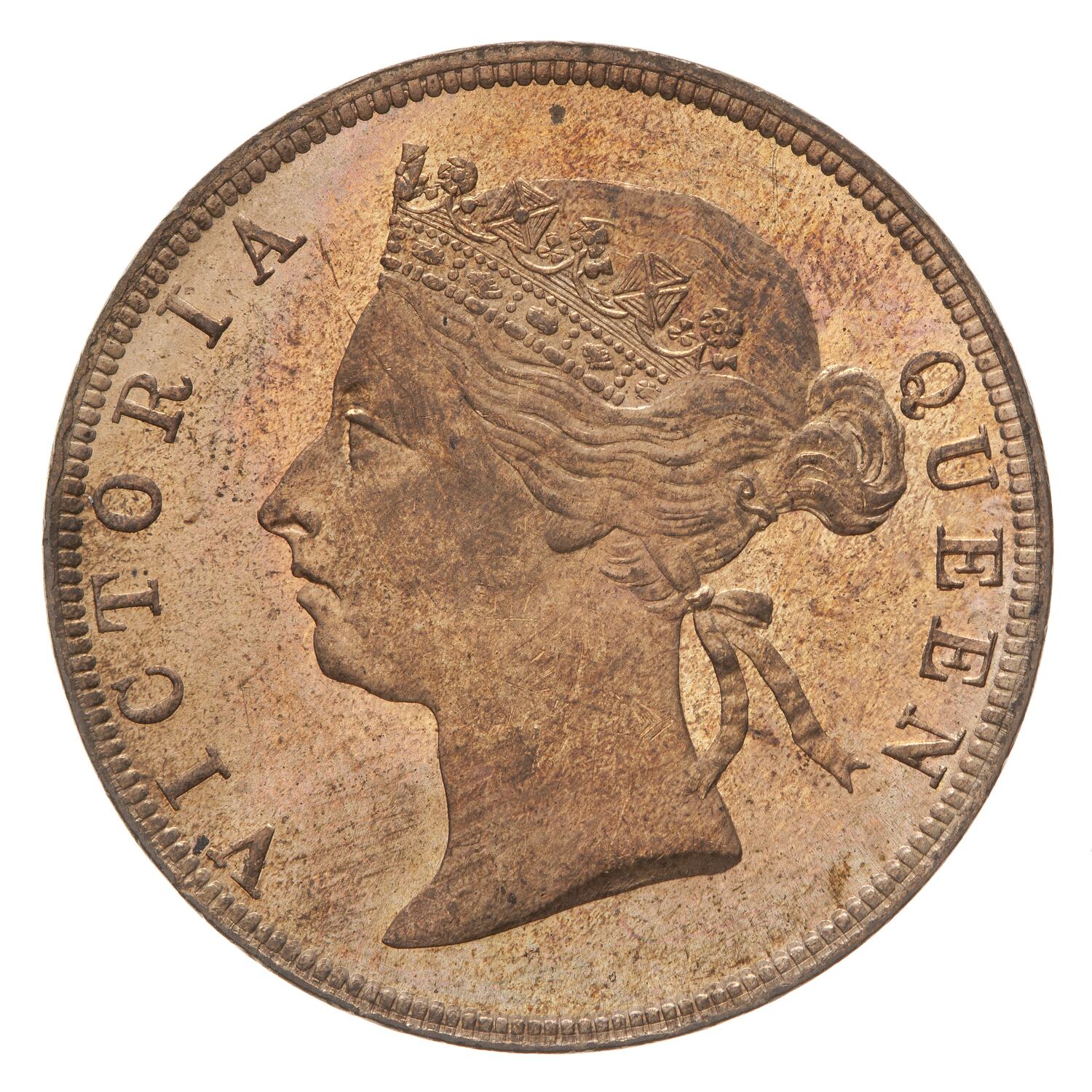Diademed head facing left; around, VICTORIA QUEEN