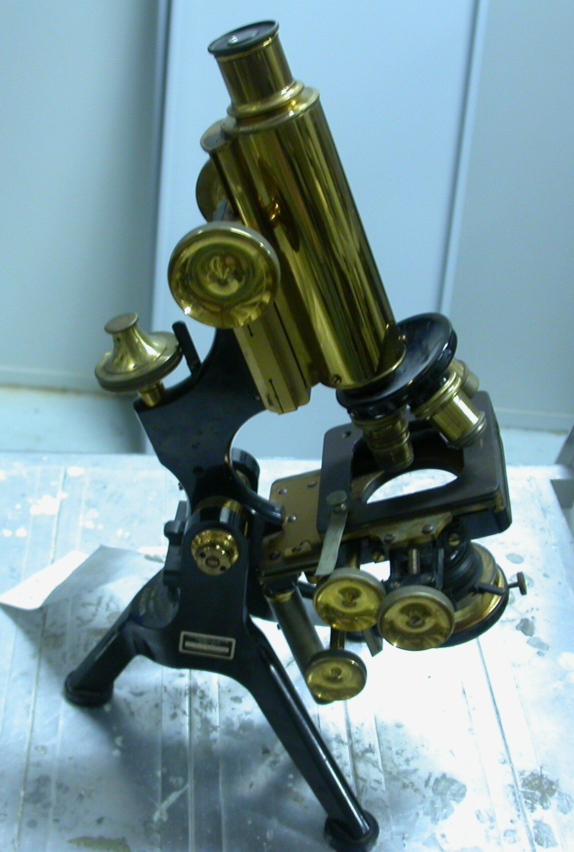 Watson Routine Microscope and custom storage box circa 1910. Mechanical stage and monocular. Used by Commonwealth Serum Laboratories (CSL) Limited, Parkville, Victoria.