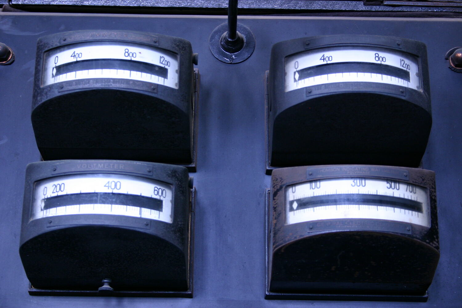 This electrical control panel unit is believed to have been installed in the South Engine Room as part of the second batch of electric pumping equipment installed in the Nos.3-4 & 6 Pumping Wells in 1923-4. This equipment was initially powered by electricity supplied by the Victorian Railway's Newport A power station. Most of the panel was made locally by Australian General Electric Pty Ltd (AGE) but some components are imported such as the British Thomson-Houston circuit breaker (UK) and the General Electric (USA) volt and wattmeters.