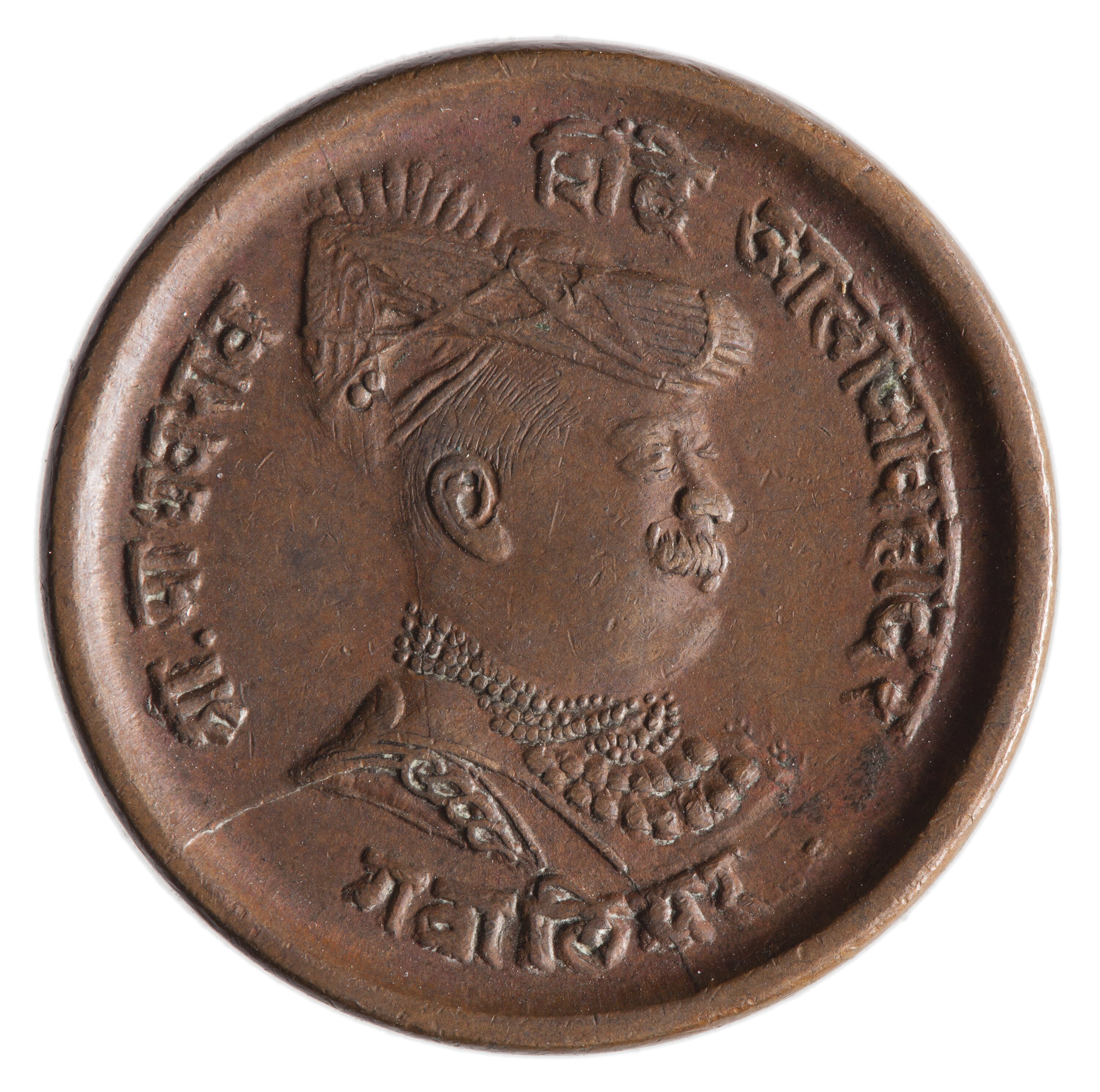 Draped bust of Madho Rao facing right; around, legend