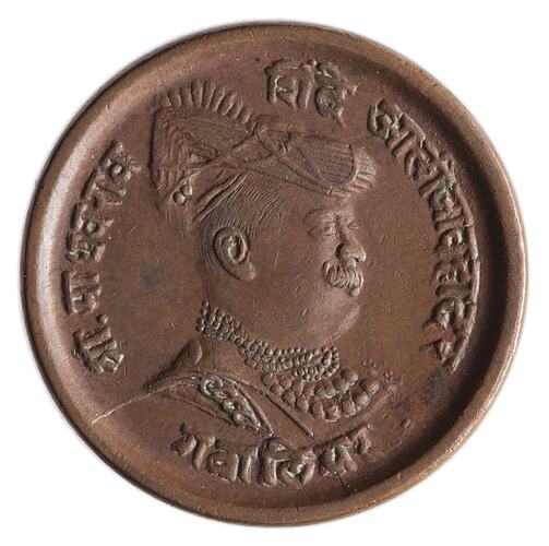 Copper 1/4 Anna coin issued by Madho Rao in the Gwalior Princely State