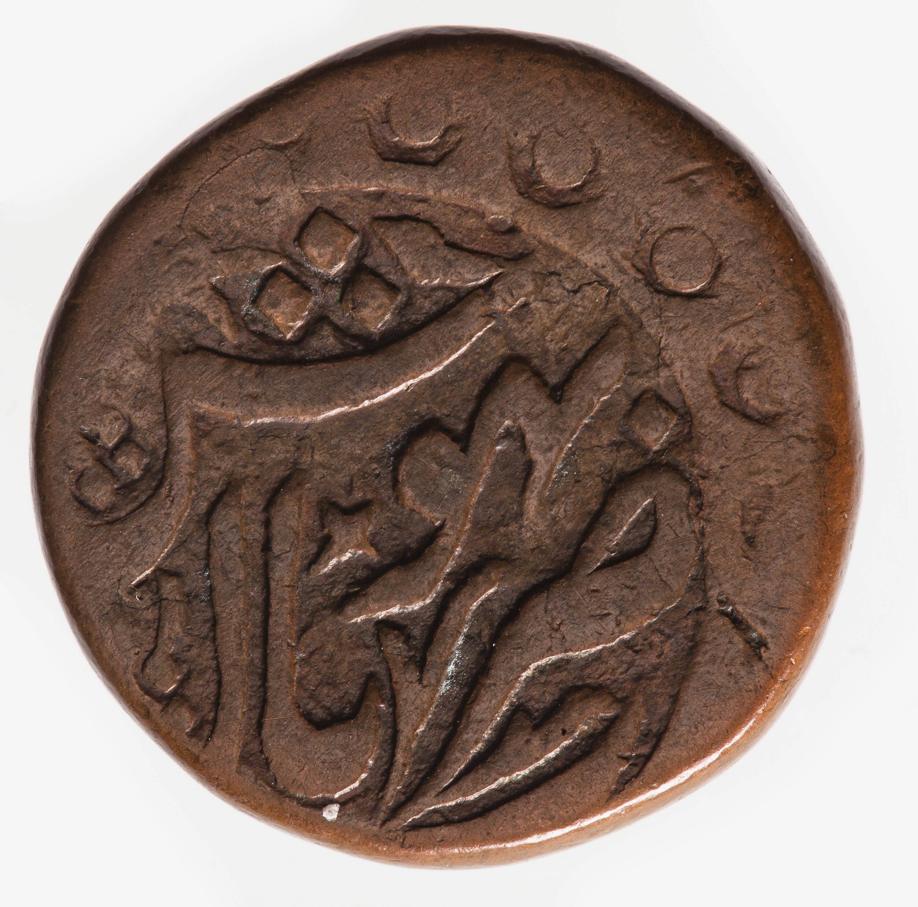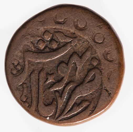 Within an ornate border, legend in Persian giving the mint name - Bhopal