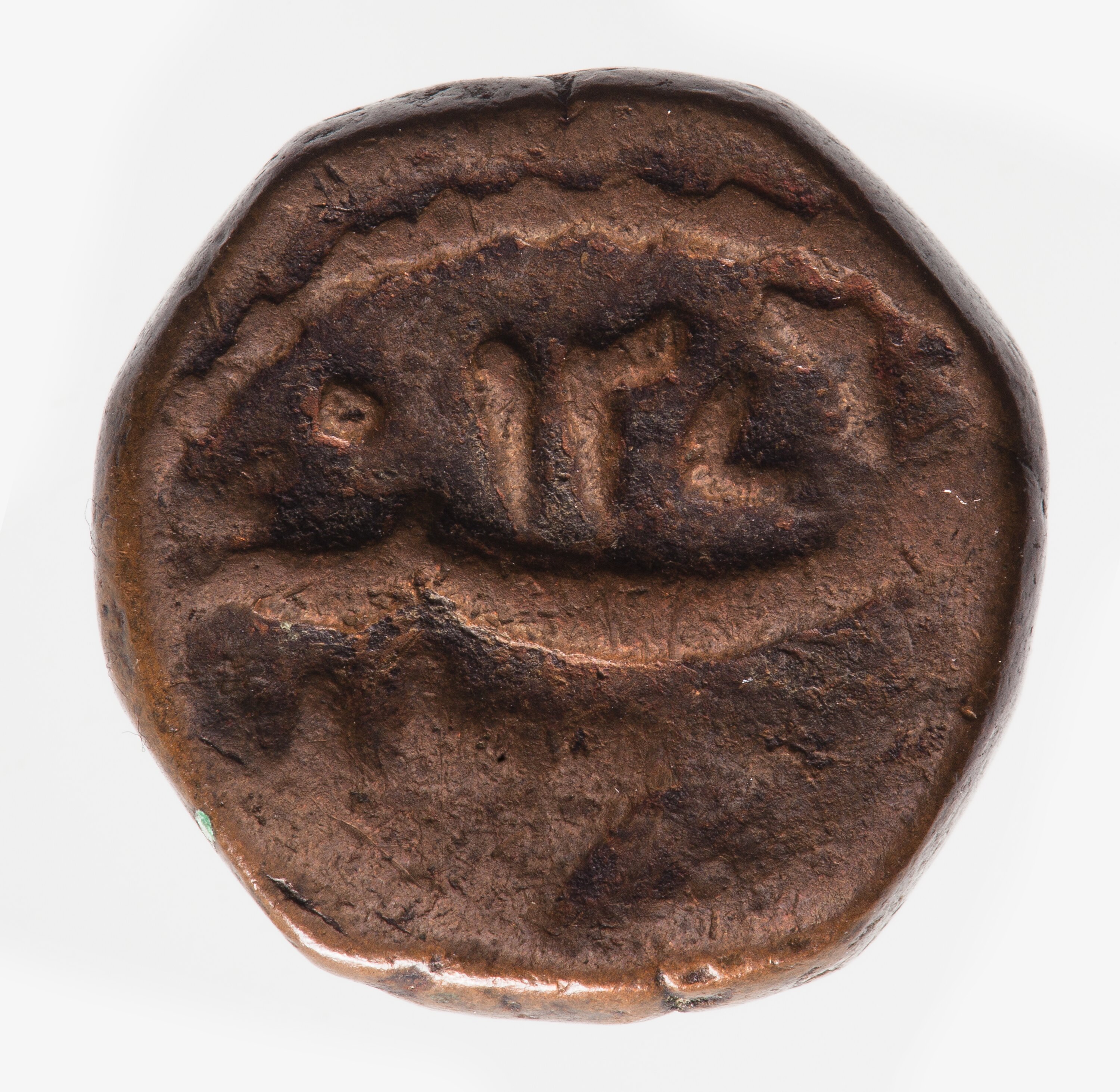 Legend in Persian giving the date, 1276, and the mint name (mostly off flan) - Bhopal