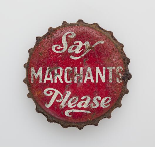Say/MARCHANTS/Please (in white on red)
