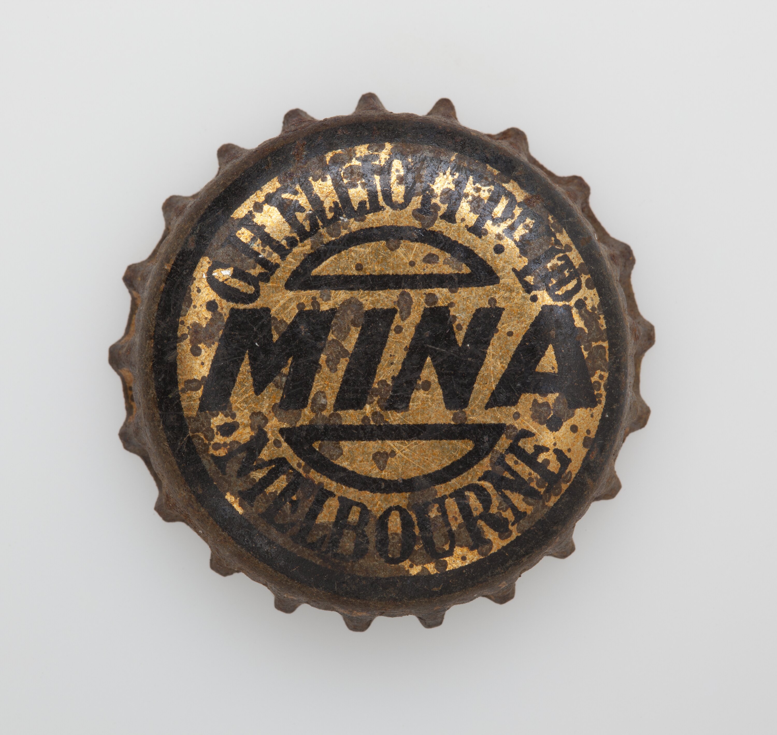 Metal bottle top, used in the making of tomato paste by Vincenzo Candela and his wife Emanuela Nigro. The Candelas made much of their own food including homemade pasta, tomato sauce, wine, sausages and they roasted their own coffee.