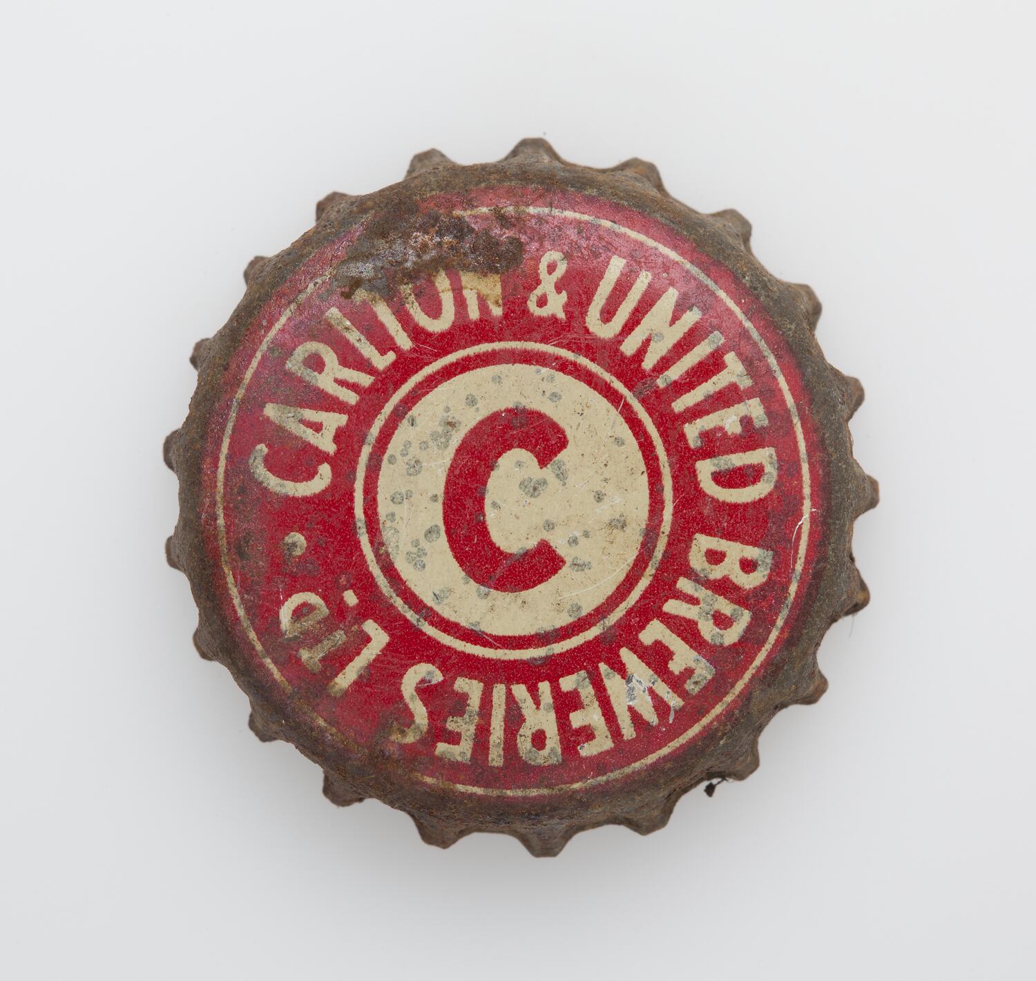 CARLTON & UNITED BREWERIES LTD (in cream on red)./ C (in red on cream)