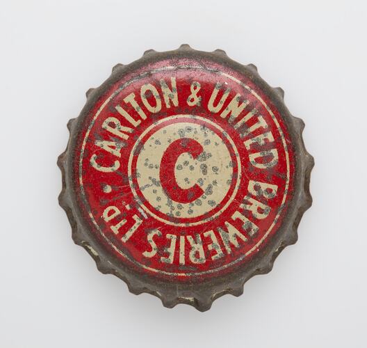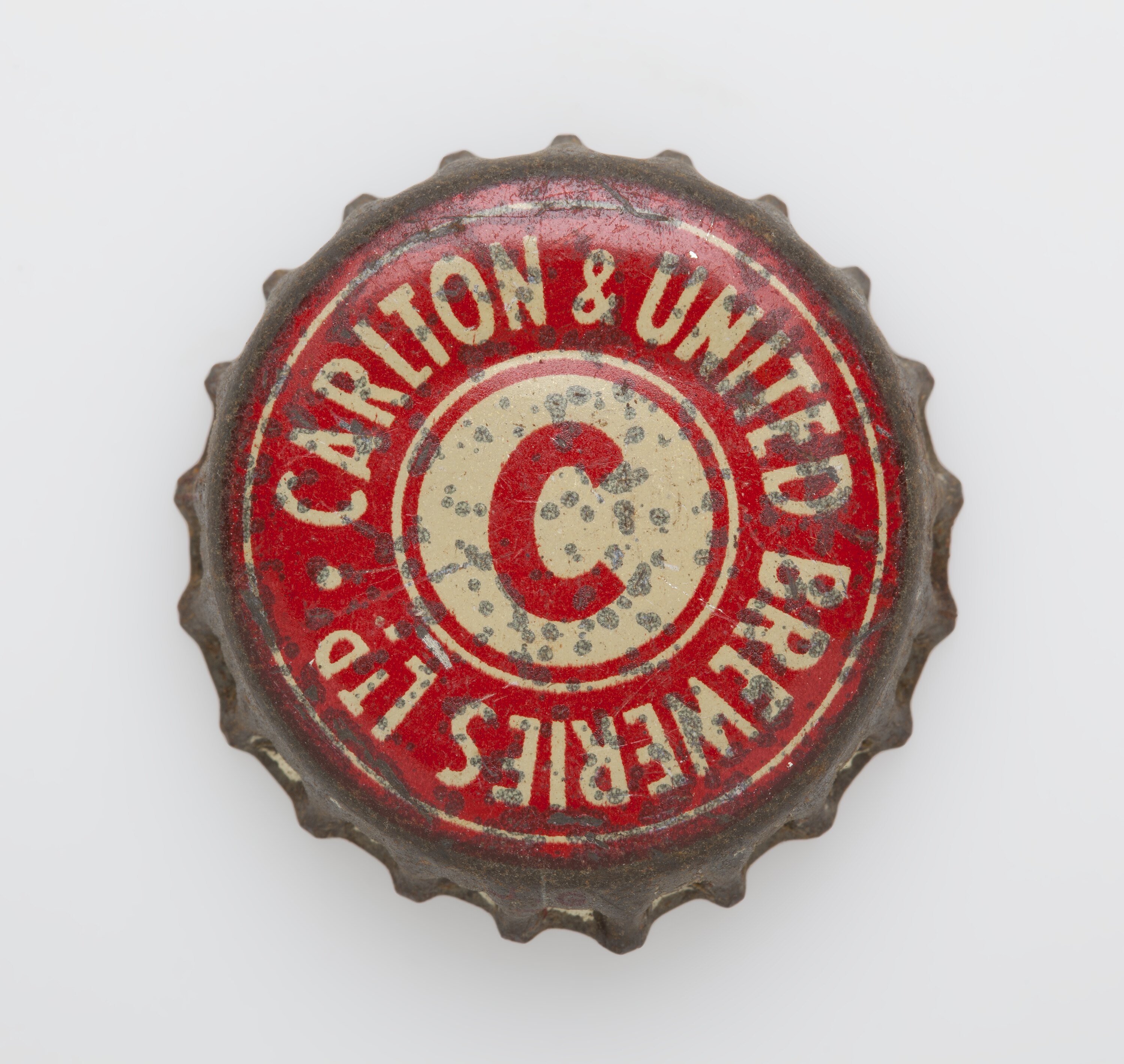 CARLTON & UNITED BREWERIES LTD (in cream on red)./ C (in red on cream)