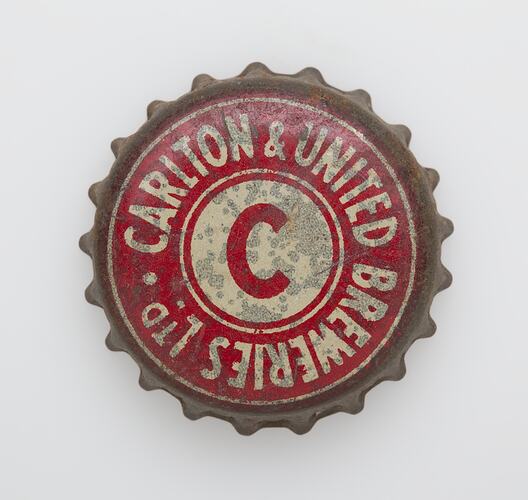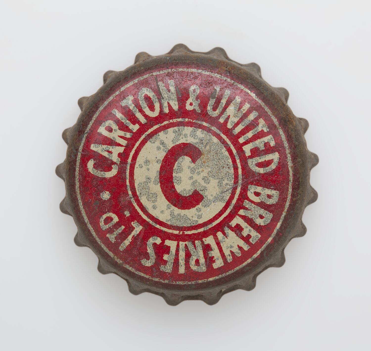 CARLTON & UNITED BREWERIES LTD (in cream on red)./ C (in red on cream)