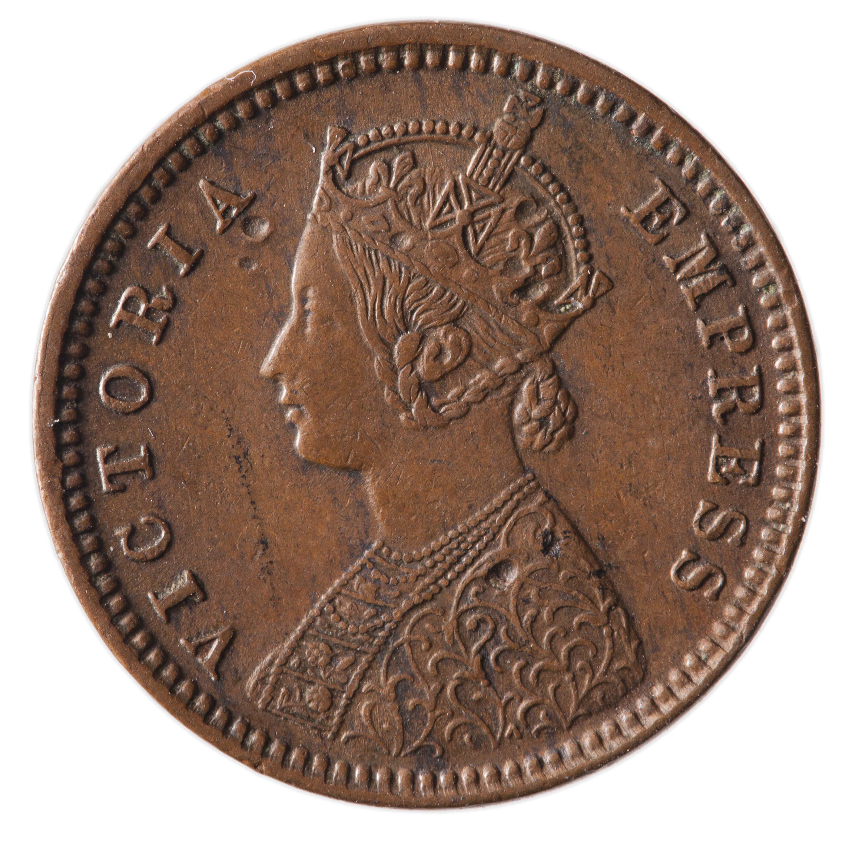 Crowned bust of Queen Victoria facing left; around, VICTORIA EMPRESS