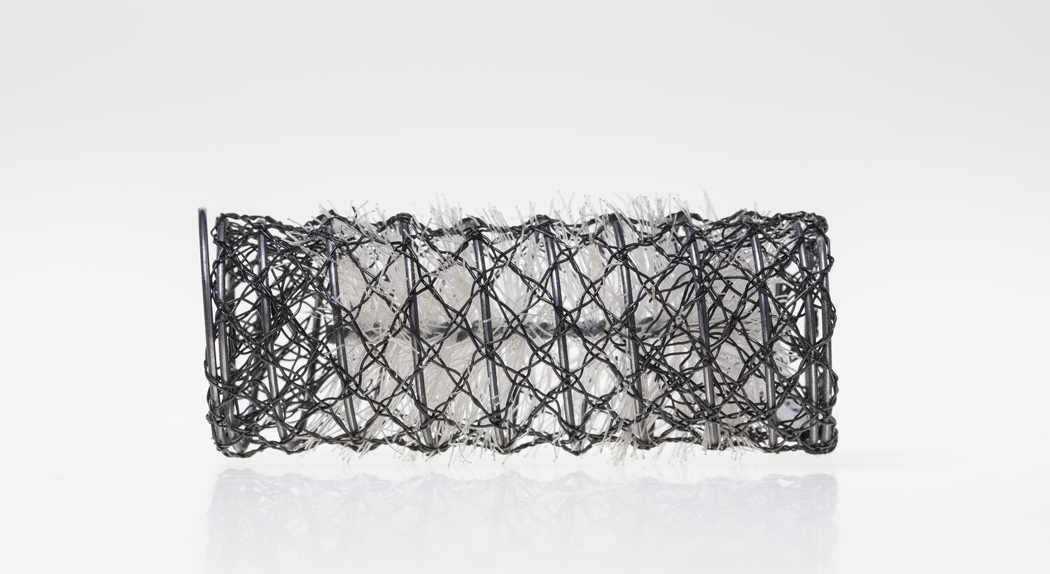 Whiskered roller, consisting of a sleeve of woven wire, inside which is a brush comprising a length of wire from which clear thin plastic hairs protrude, slightly extending beyond the sleeve.