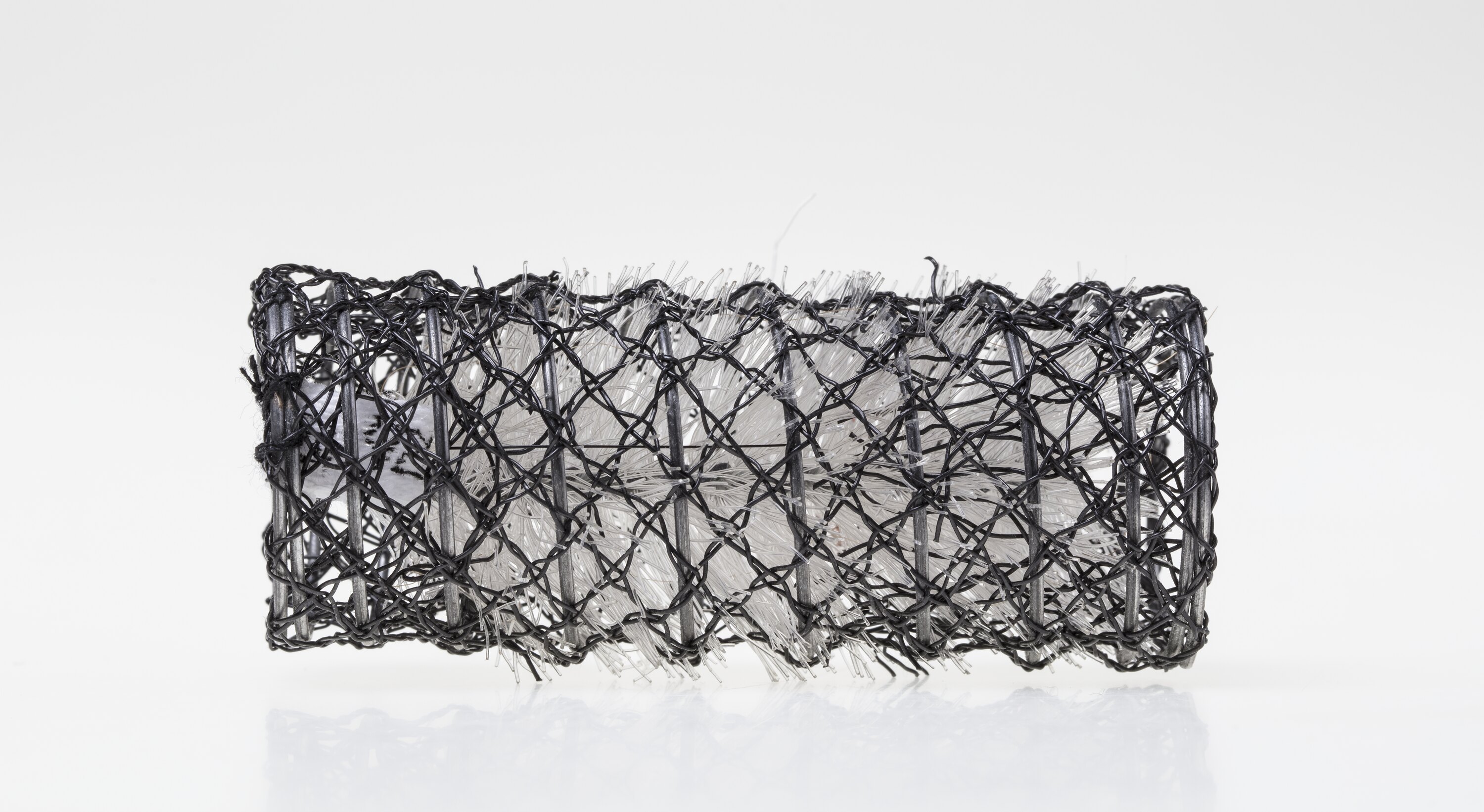 Whiskered roller, consisting of a sleeve of woven wire, inside which is a brush comprising a length of wire from which clear thin plastic hairs protrude, slightly extending beyond the sleeve.