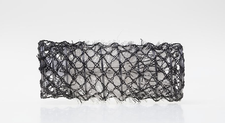 Wire mesh brush hair roller. One of a mixed collection of hair rollers, made circa 1950-1969. The rollers were used by the donor's mother, Mrs Everly (nee Ms Loughlin). After completing her apprenticeship, Ms Loughlin used the rollers in her hairdressing business in Yarraville and later in private practice at her home.