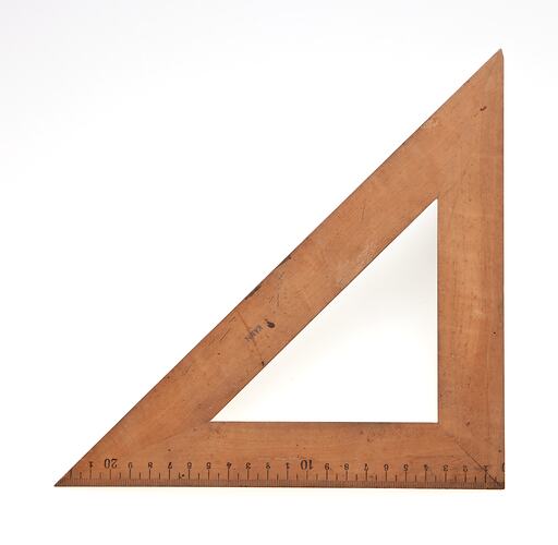 Wooden set square, one of a set, which belonged to Herbert Kann. Herbert was living and working in Singapore with his parents when he was detained as an enemy alien and transported to Australia for internment at Tatura. He was released from Tatura in 1942 at the age of 33. He married fellow Austrian Jew Marion Edith and worked as a fitter, draughtsman and electrical engineer in Melbourne.