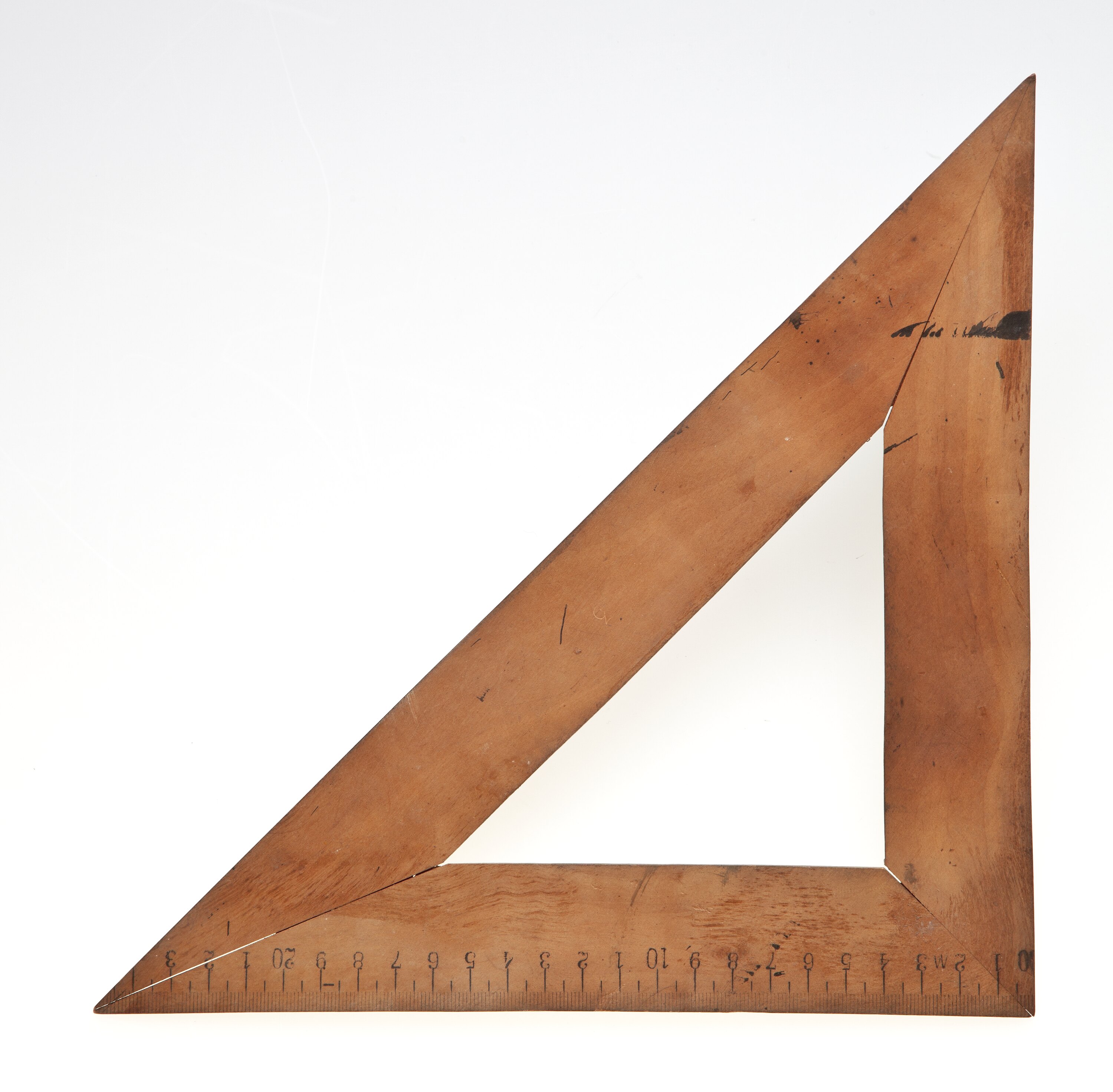 Triangular wooden set square.