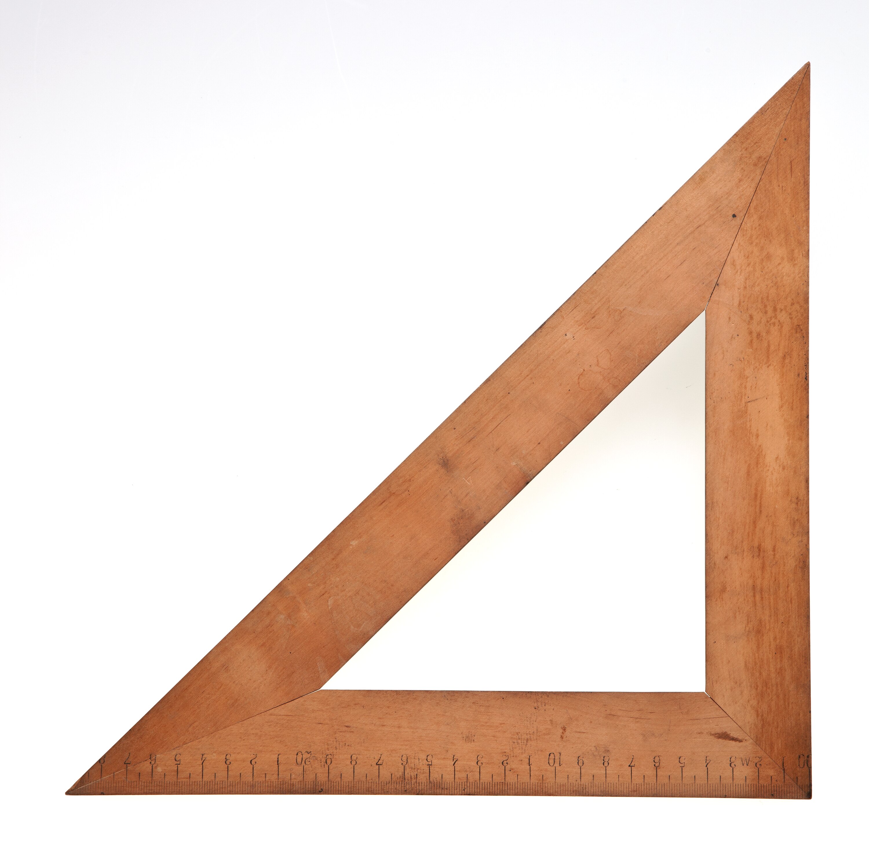 Triangular wooden set square.