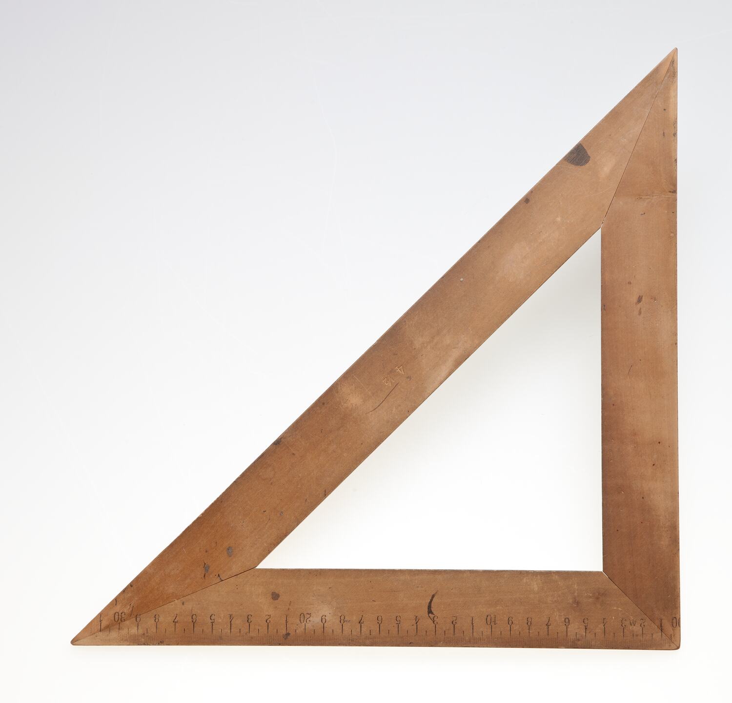 Triangular wooden set square.