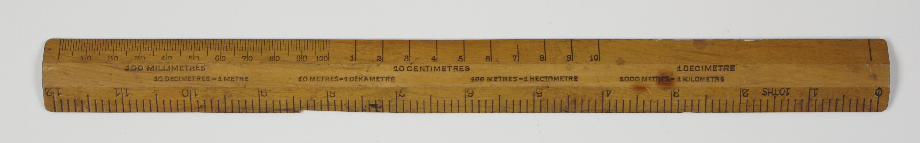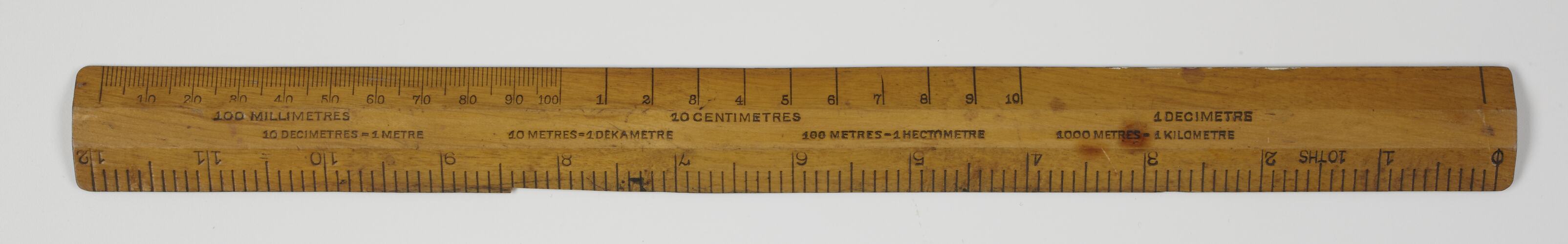 Wooden drafting ruler, one of a set of seven, which belonged to Herbert Kann. Herbert was living and working in Singapore with his parents when he was detained as an enemy alien and transported to Australia for internment at Tatura. He was released from Tatura in 1942 at the age of 33. He married fellow Austrian Jew Marion Edith and worked as a fitter, draughtsman and electrical engineer.