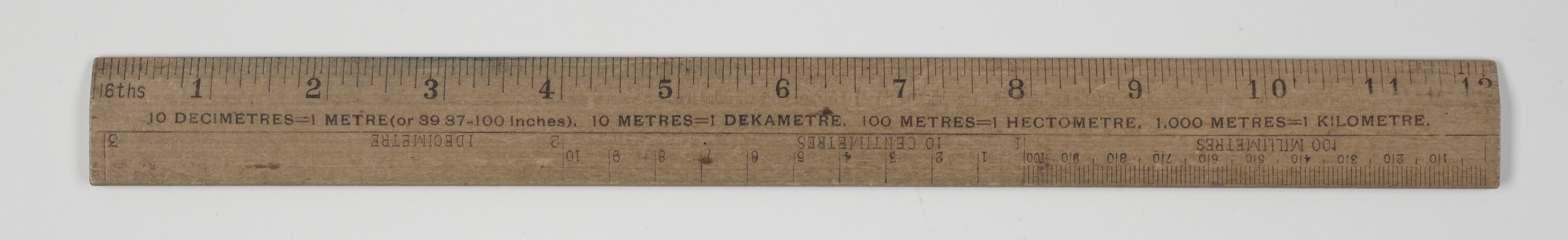 Wooden drafting ruler, one of a set of seven, which belonged to Herbert Kann. Herbert was living and working in Singapore with his parents when he was detained as an enemy alien and transported to Australia for internment at Tatura. He was released from Tatura in 1942 at the age of 33. He married fellow Austrian Jew Marion Edith and worked as a fitter, draughtsman and electrical engineer.