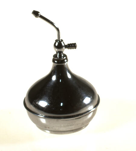 Lacquer sprayer purchased in Melbourne by Ernesto Angerame around 1949 for his barber shop at 330 Lygon Street, Carlton. Some of his tools and equipment were purchased from other Italian barbers closing down their businesses.