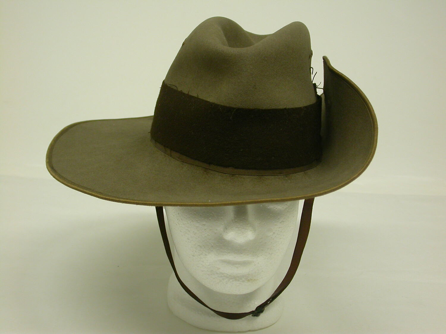 Australian Army Medical Corps slouch hat, kahki green. No badges. Part of an Australian uniform, Australian Army Medical Corps, 1914-18, worn by Lieutenant-Colonel John Hodgson Nattrass, 2nd Field Ambulance.